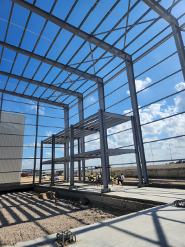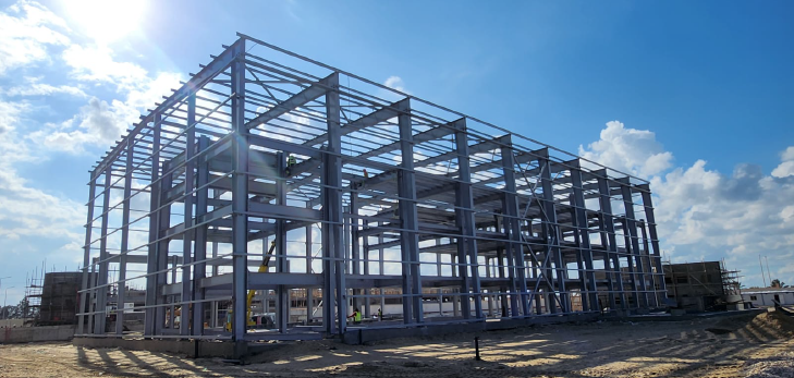 Fieldwork focuses on inspecting concrete foundations and the precise setting of Anchor Bolts to receive the steel frames, followed by supervising the erection, bolting, welding, and protective coating of the Steel Structures. Simultaneously, it covers the full structural and architectural execution of the administrative building.